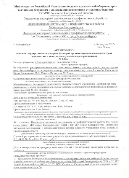 Акт проверки МЧС 2017 год (лист 1) (скачать) (посмотреть)