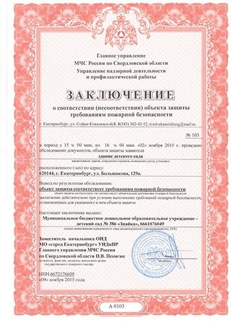 Заключение о соответствии объекта защиты требованиям пожарной безопасности 2015 г. (скачать) (посмотреть)