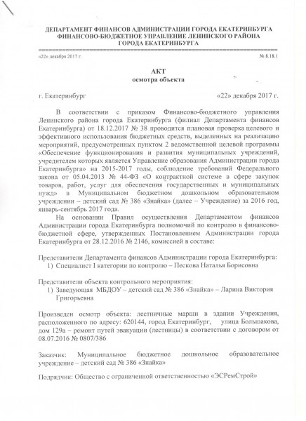 Акт осмотра объекта ФБУ Ленинского района г. Екатеринбурга (лист 1) (скачать) (посмотреть)