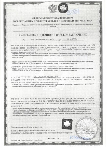 Санитарно-эпидемиологическое заключение (скачать) (посмотреть)